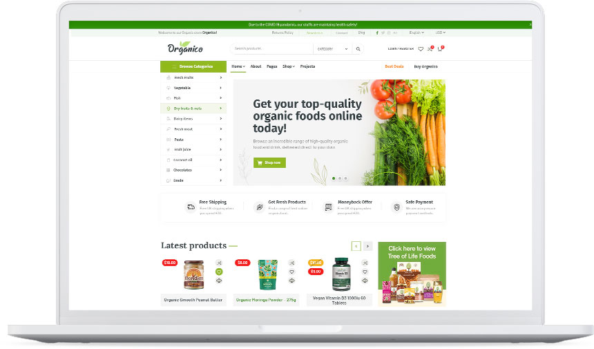 Build your organic store with Organio Purchase now. $59!